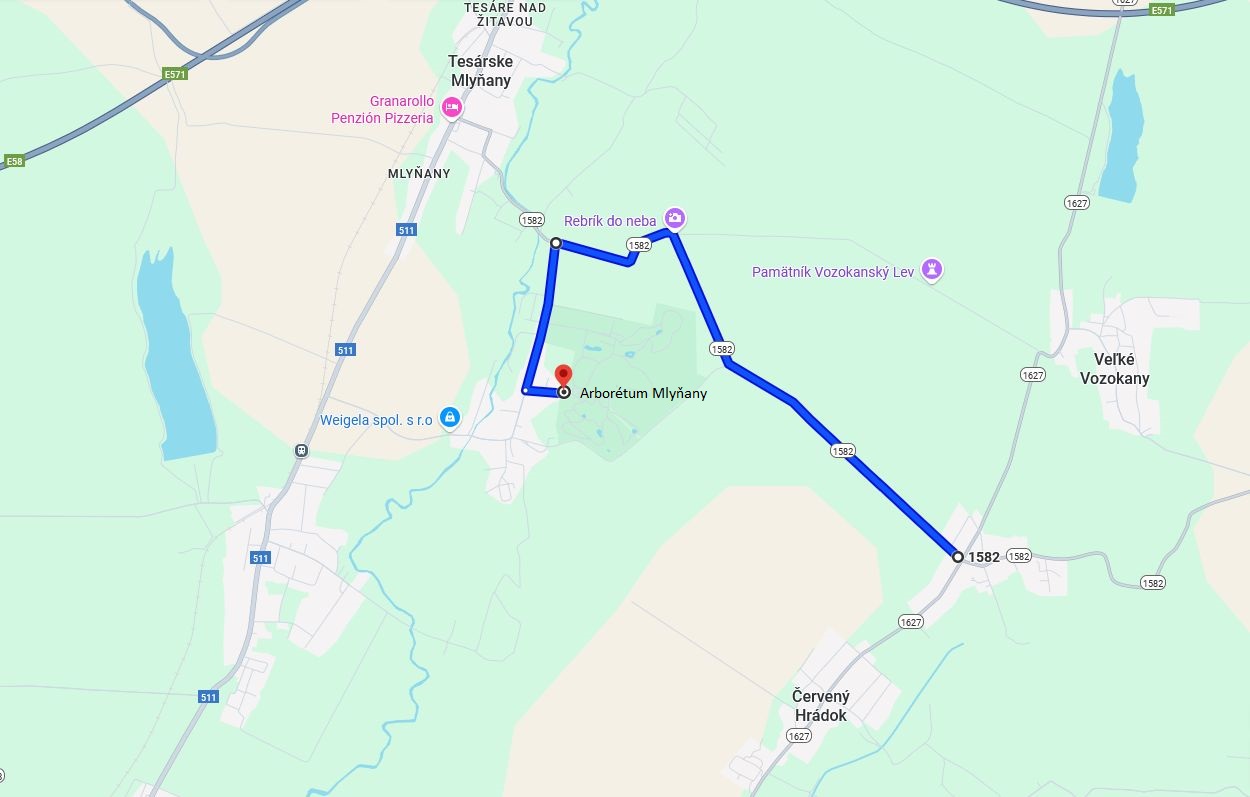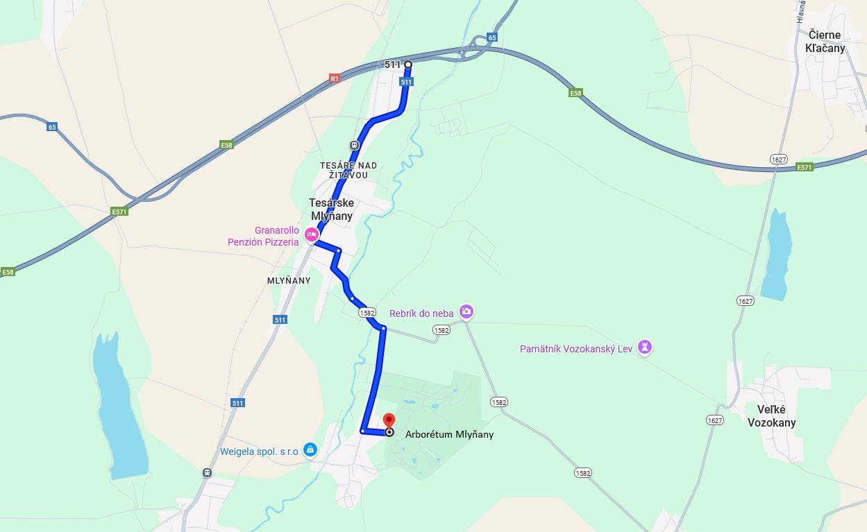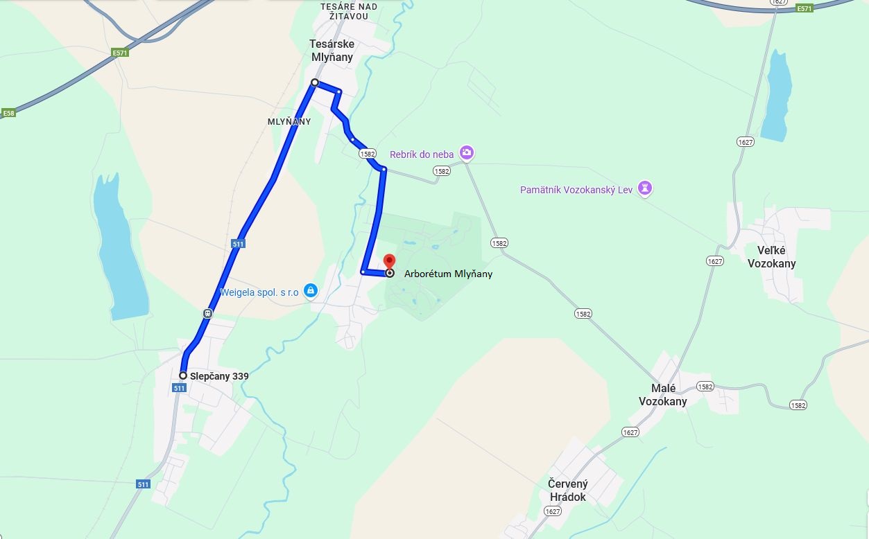Mapa trasa Malé Vozokany - Arborétum Mlyňany SAV vo Vieske nad Žitavou